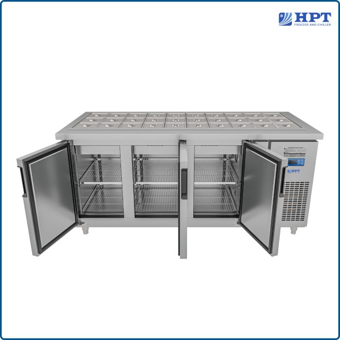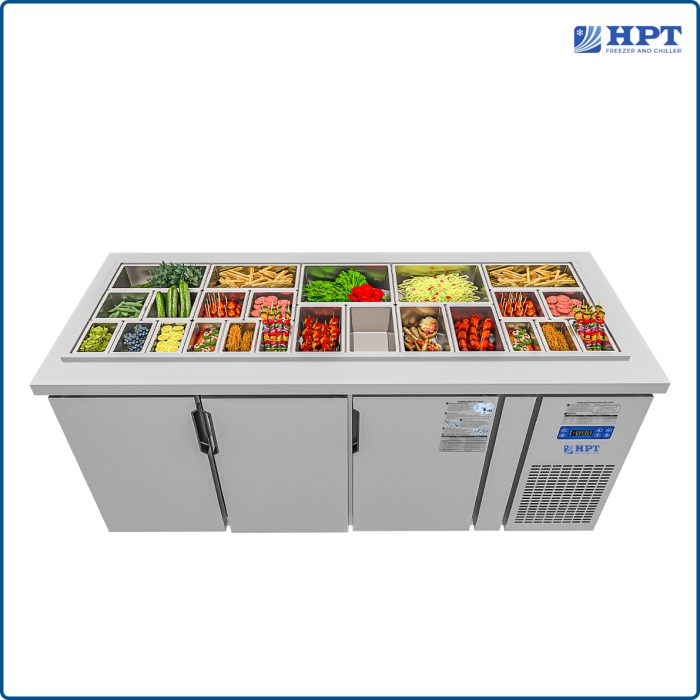 Đánh giá Tủ bàn salad quạt gió 3 cánh mở inox 1800x750x850